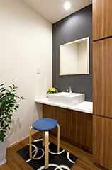 車いすの方でも余裕をもって使用できるよう広々とした空間にしています。また、小さなお子様と一緒に来院される方に、おむつの交換スペースを設けておりますのでご利用ください。