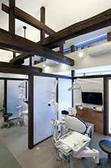 歯科医院の診察室は同時に何人かの患者さんが診察室に入り流れ作業的に治療を受けるのが日本の歯科医院の特徴です。当院では患者さんのプライバシーに配慮し、個室を用意しています。ゆったりと落ち着いた雰囲気で、歯のクリーニングやインプラント治療が行えます。
